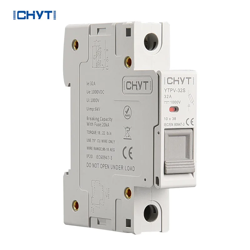 Čína Dodavatelé ICHYTI Koupit slevu 1000v DC 1p Držák pojistky je vyroben z čistého stříbra, zpracován pájkou s nízkým obsahem cínu během svařování a poté zapouzdřen do vysoce pevné keramiky. Vnitřní zápalná trubice je naplněna vysoce čistým křemičitým pískem a chemicky upravena pro použití jako obloukové médium. Vlastní pojistka a kontaktní svorky jsou spojeny technologií bodového svařování. Použití těchto materiálů a technologií má za cíl zvýšit výkon držáků stejnosměrných pojistek v solárních panelech, zajistit jejich spolehlivost a bezpečnost, podpořit rozvoj čisté energie a dosáhnout ekologického a udržitelného rozvoje.