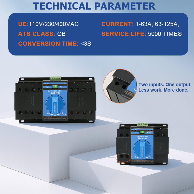 CHYT Update přepínač automatického přenosuAktualizace připojení: 2IN 1OUT, Usnadněte připojeníProud: 1-125A,2P&4PZáruka: 2 rokyDodací lhůta: do 7 dnů