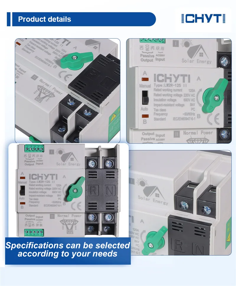 Přepínač automatického přenosu ICHYTI dual power lze přizpůsobit a můžete si jej s důvěrou zakoupit. Těšíme se na spolupráci a poskytování dalších informací. Máte-li jakékoli dotazy, neváhejte nás kdykoli kontaktovat. Naše laboratoř je navržena podle mezinárodních norem IEC a splňuje všechny požadavky na testování výrobků.